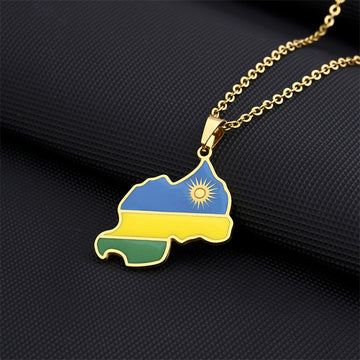 Titanium Steel Rwanda Map African Enamel Trendy Gold Silver Color