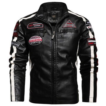 Men Motorcycle Jacket Logo Embroidery Bomber Jacket Slim Fit Coat Biker