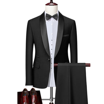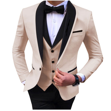 Men Skinny 3 Pieces Set Formal Slim Fit Tuxedo Prom Suit
