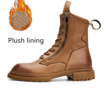 Luxury Design Men Motorcycle Boots Genuine Leather Lace-Up